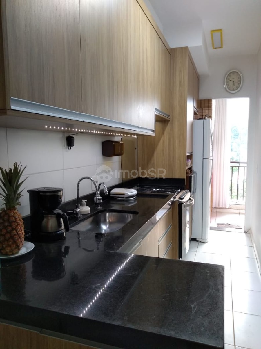 Apartamento mobiliado com dois dormitórios sendo uma suíte, sala com sacada, cozinha com armários, lavanderia, banheiros com lavabo e gabinete. Garagem coberta. Andar alto. O condomínio conta com portaria 24 horas e excelente área de lazer.