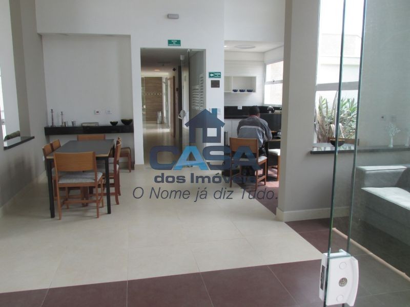 Salão de festas com pé-direito duplo.