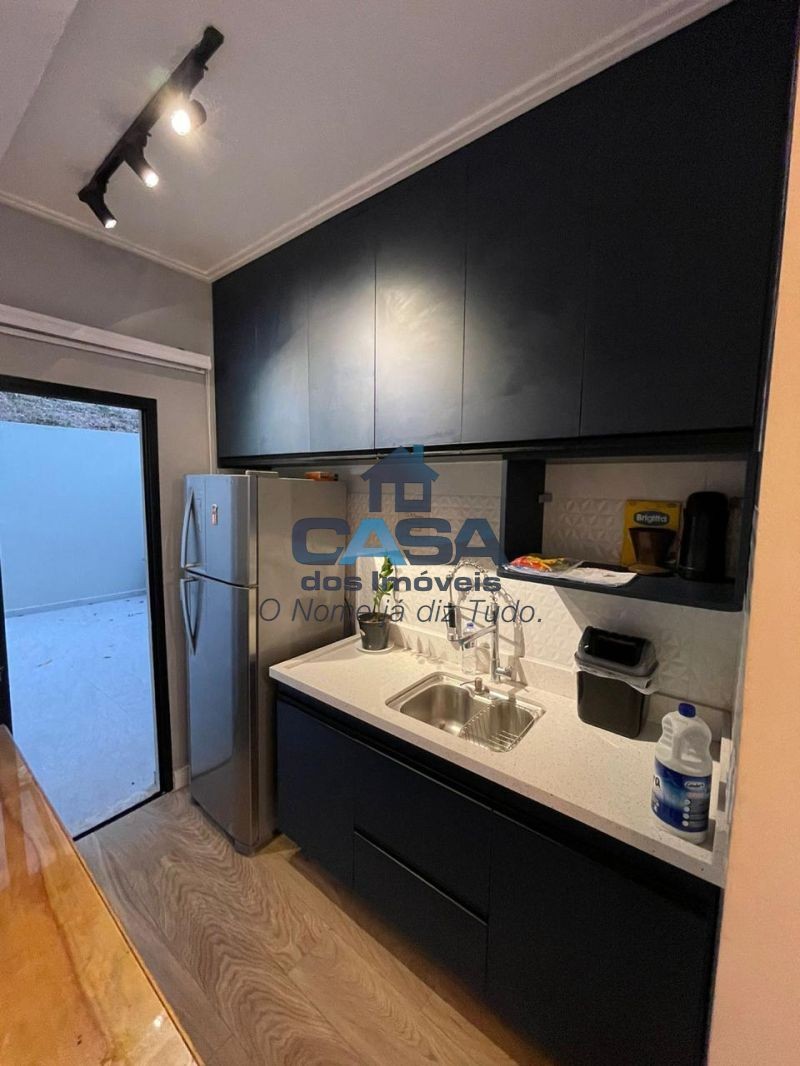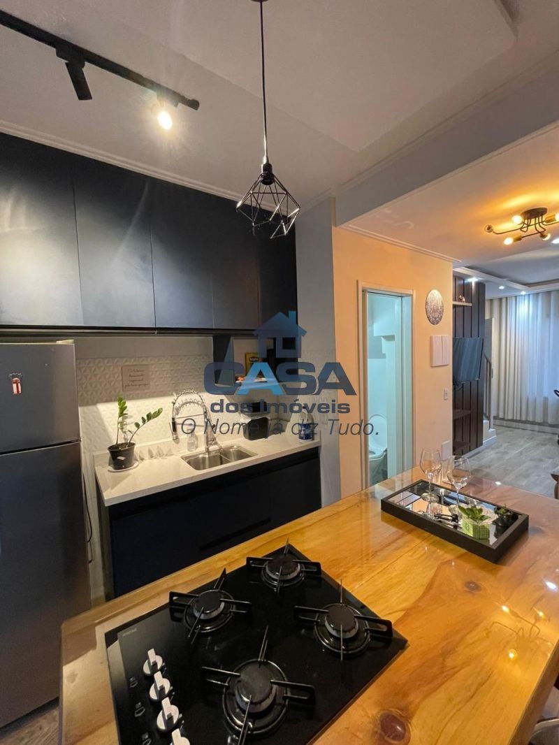 A área social dispõe de sala aconchegante, cozinha com ilha, equipada com cooktop, forno elétrico e armários planejados, além de lavabo, quintal privativo e lavanderia. Possui ainda garagem com 2 vagas.