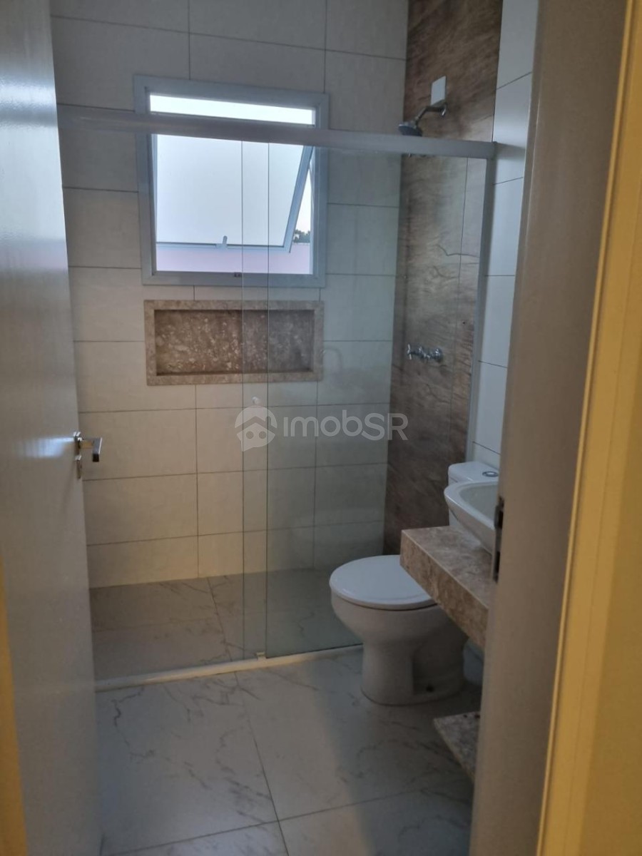 Casa em condomínio fechado contendo três dormitórios sendo uma suíte com sacada e sala de tv no piso superior. No piso inferior possui sala com dois ambientes, lavabo, cozinha com gabinete e armário, fogão cooktop, lavanderia, aquecimento a gás. Quintal com churrasqueira, garagem coberta para dois veículos. Imóvel localizado no meio do condomínio. O condomínio conta com portaria 24 horas.