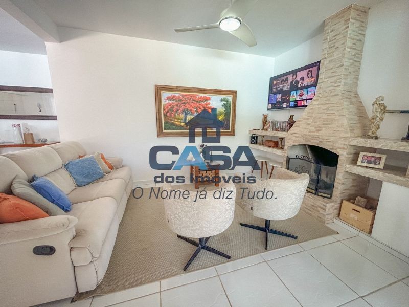 Sala de TV com lareira.