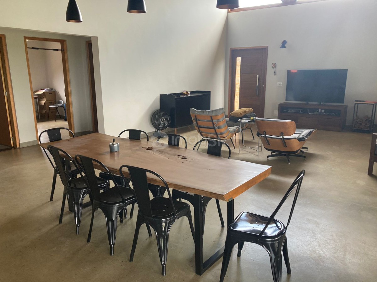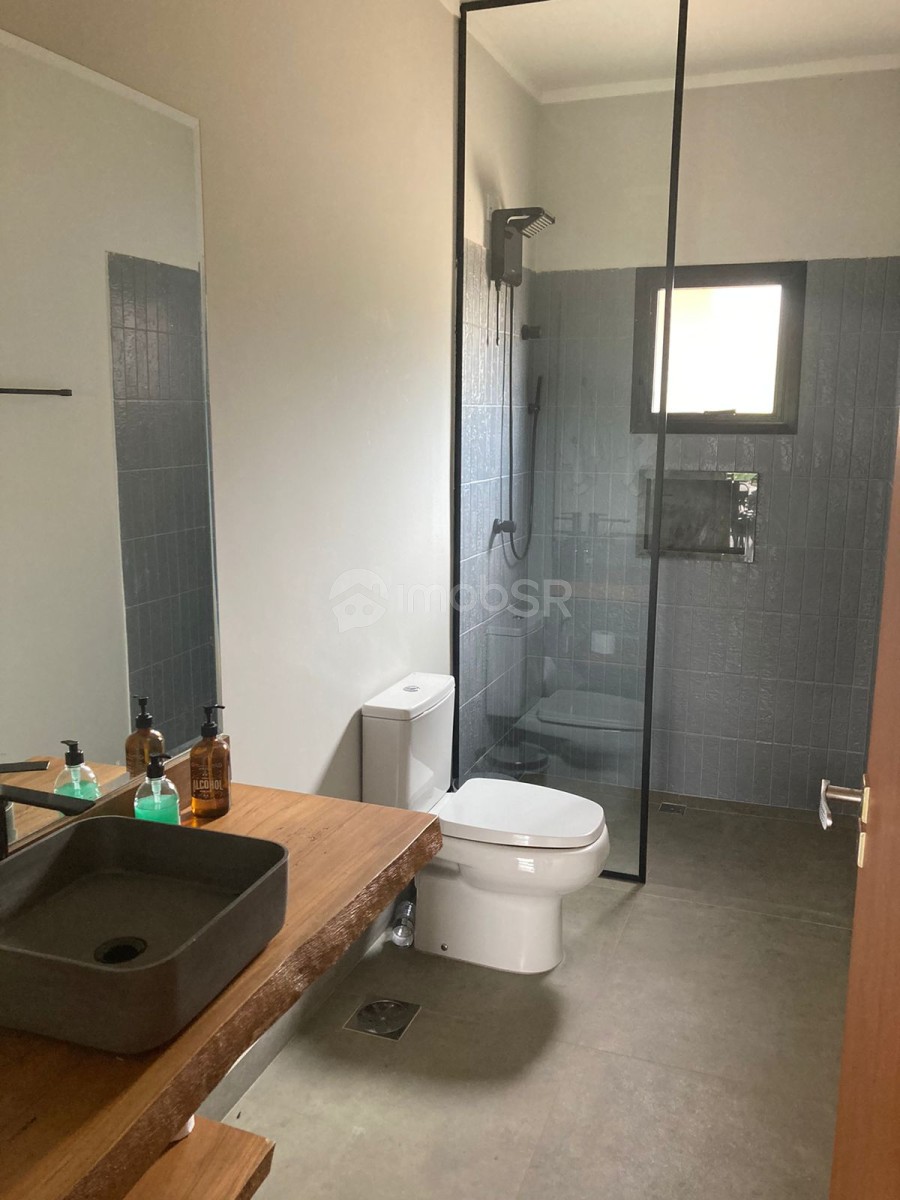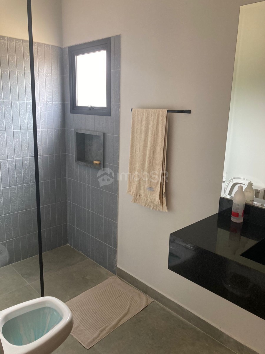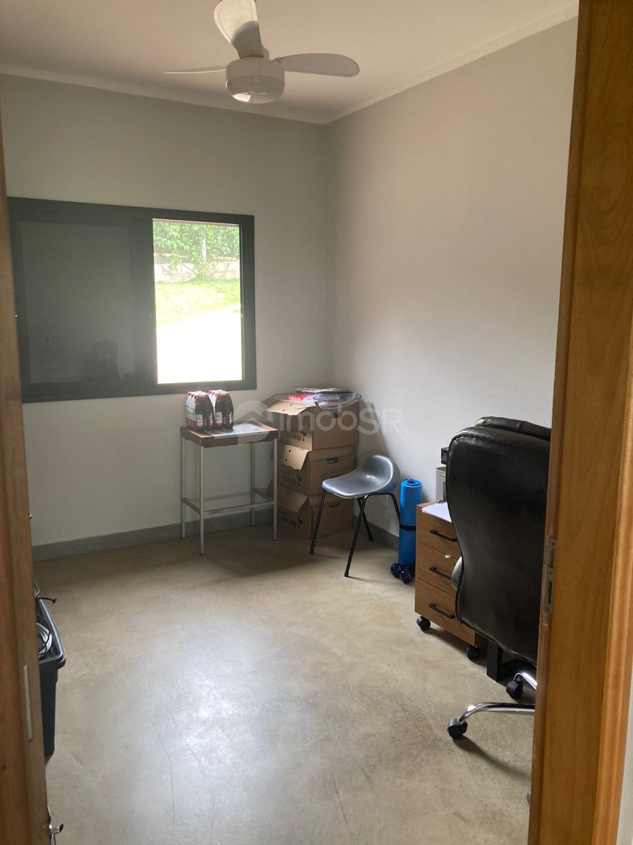 Chácara em condomínio fechado com três dormitórios sendo duas suítes e um revertido para escritório. Suíte principal com closet. Ambiente aberto sincronizando a sala com a cozinha. Possui lareira, varanda com espaço gourmet. Despensa, lavanderia, garagem coberta para dois veículos com portão eletrônico. Área para construção de piscina, campo ou quadra. Localizada no meio do condomínio. Construção nova com produtos de primeira linha.
