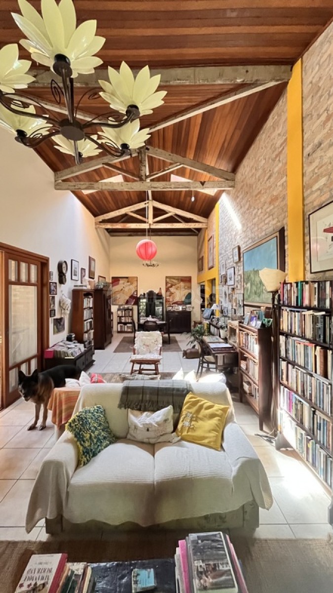 Decorado com muitos livros e obras de arte, criando uma atmosfera de livraria particular