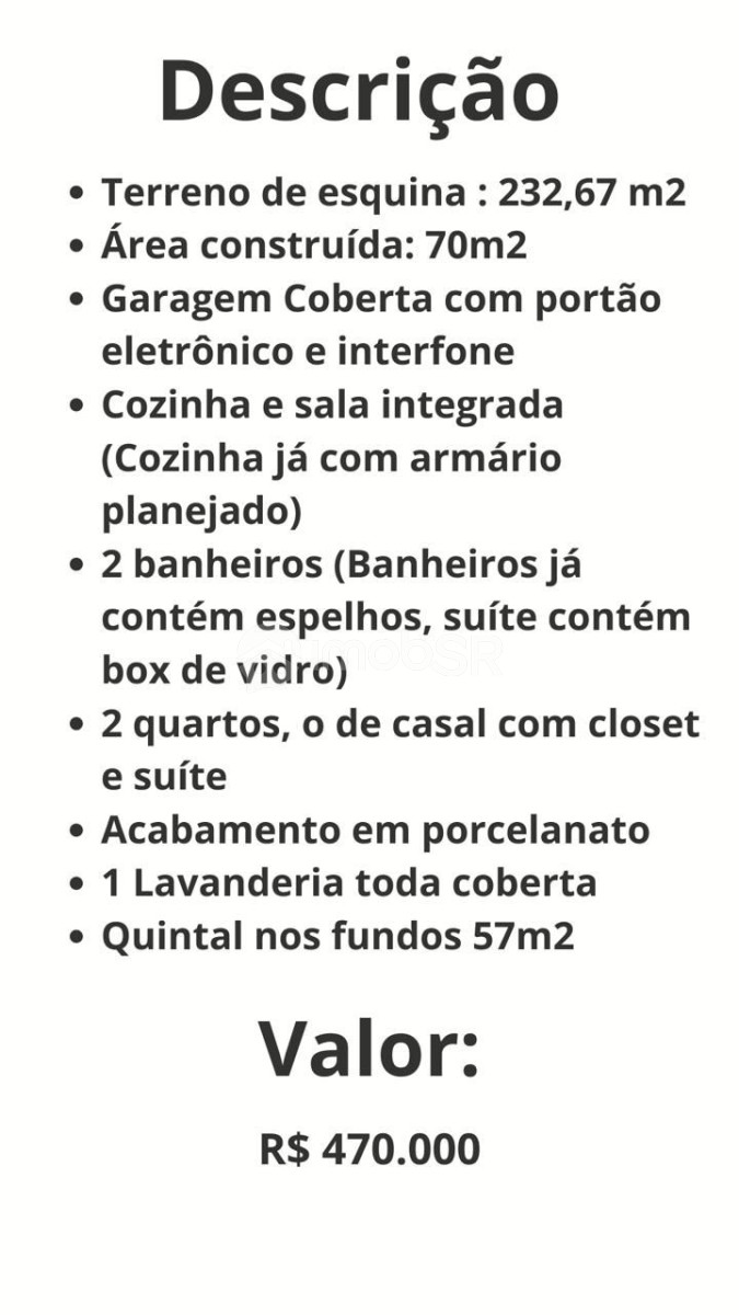 AGORA SIM ENCONTRAMOS A CASA PERFEITA PARA VOCÊ! Belíssima casa de esquina, contendo 232,67m² e 70m² de área construída, contendo 2 quartos bem amplos, sendo o de casal com closet e uma suíte, cozinha e uma sala integrada, cozinha repleta de armários planejados de boa qualidade com piso em porcelanato, lavanderia coberta, quintal espaçoso nos fundos com 57 m²,garagem coberta com portão eletrônico e interfone. Casa bem localizada isolada sem ser geminada, térrea, bem arejada, próximo ao centro da cidade de Mairinque, rua bem tranquila de se morar com loteamento aberto de casas bem acabadas. Marque sua visita agora mesmo !!!OPORTUNIDADE (Financiamento bancário). 🎫AJRODRIGUES NEG. IMOBILIÁRIOS LTDA. 💳CRECI 29014-J Clique aqui! (Dúvidas visitas) ✅https://api.whatsapp.com/send?phone=551147131962 🔲Insta: @ajrodriguesimóveisoficial 💻Email: ajrodriguesimoveis@gmail.com 🖱Site: www.ajrodriguesnegociosimobiliarios.com.br 📮End: Amador Bueno 106, Centro de São Roque-SP